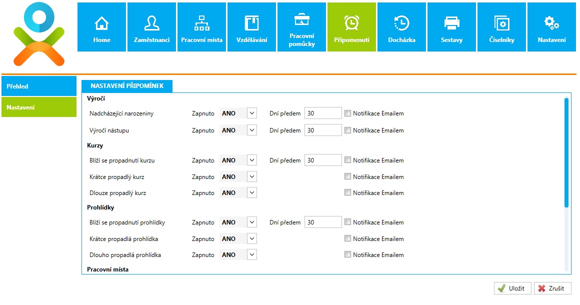 Modul Připomenutí upozorňuje na důležité personální události. Dle potřeby uživatele lze jednoduše nastavit i notifikaci e-mailem.